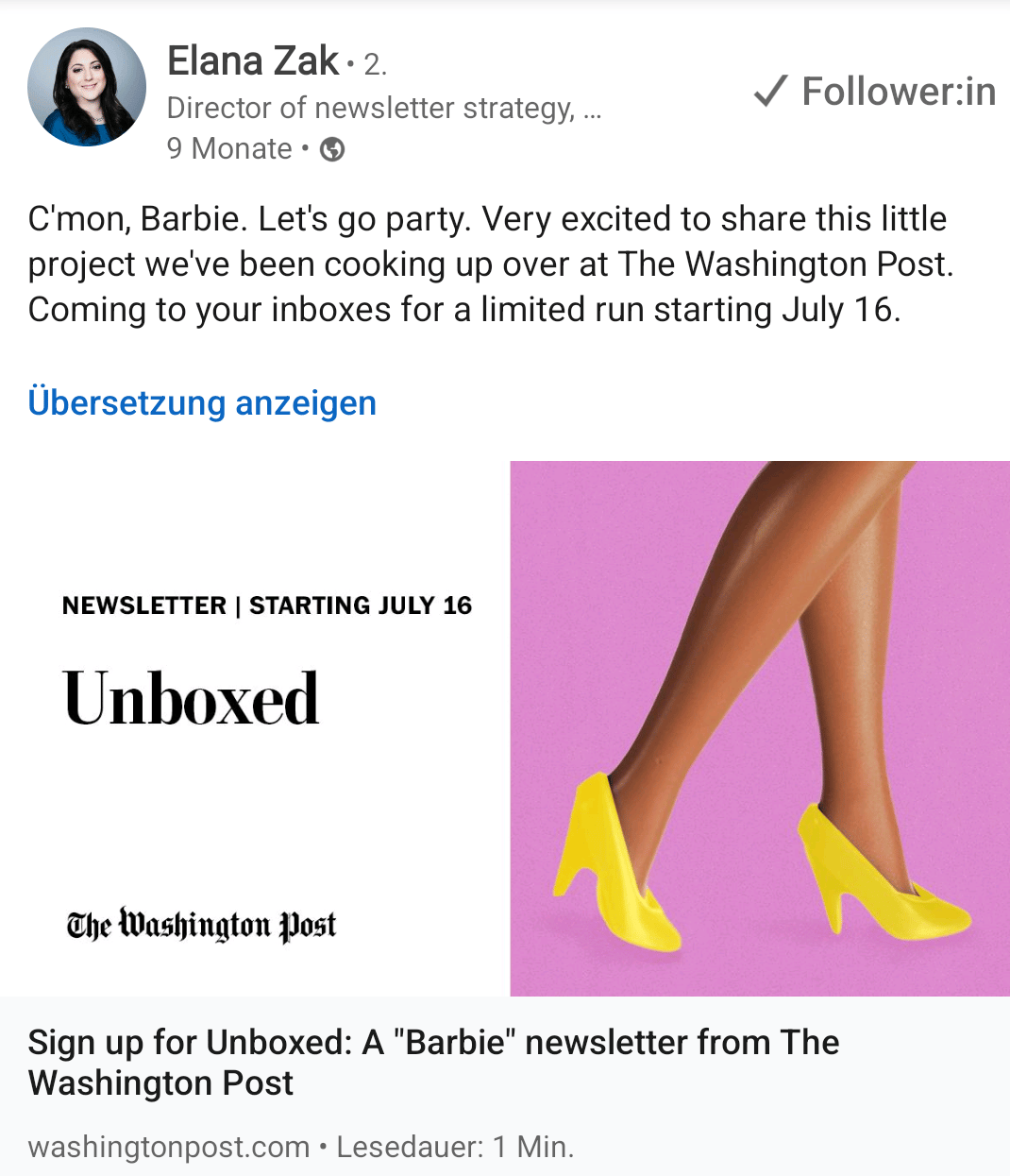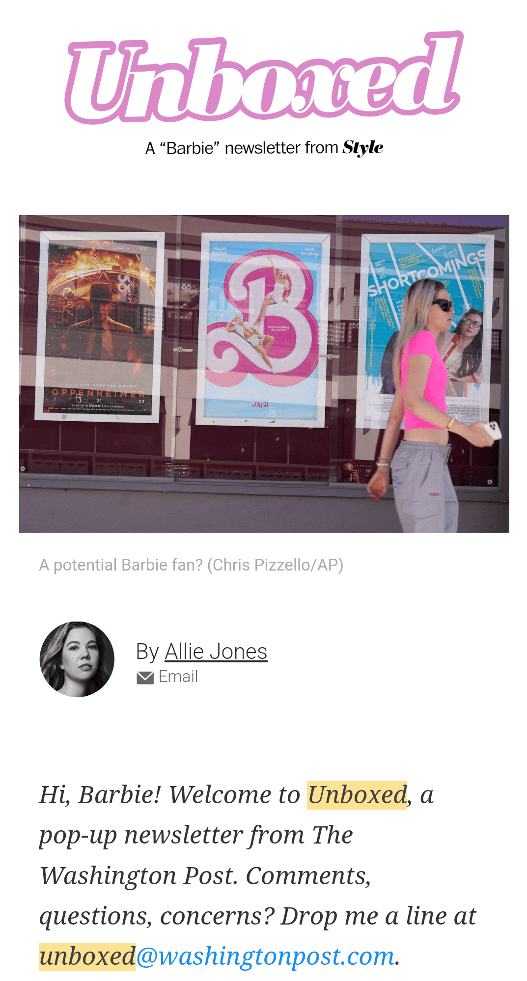 Als der gehypte Barbie-Film rauskam, versandte The Washington Post “Unboxed” – einen monothematischen Pop-up-Newsletter nur über Barbie, den Film, die Schauspieler, die Looks, den Vibe …