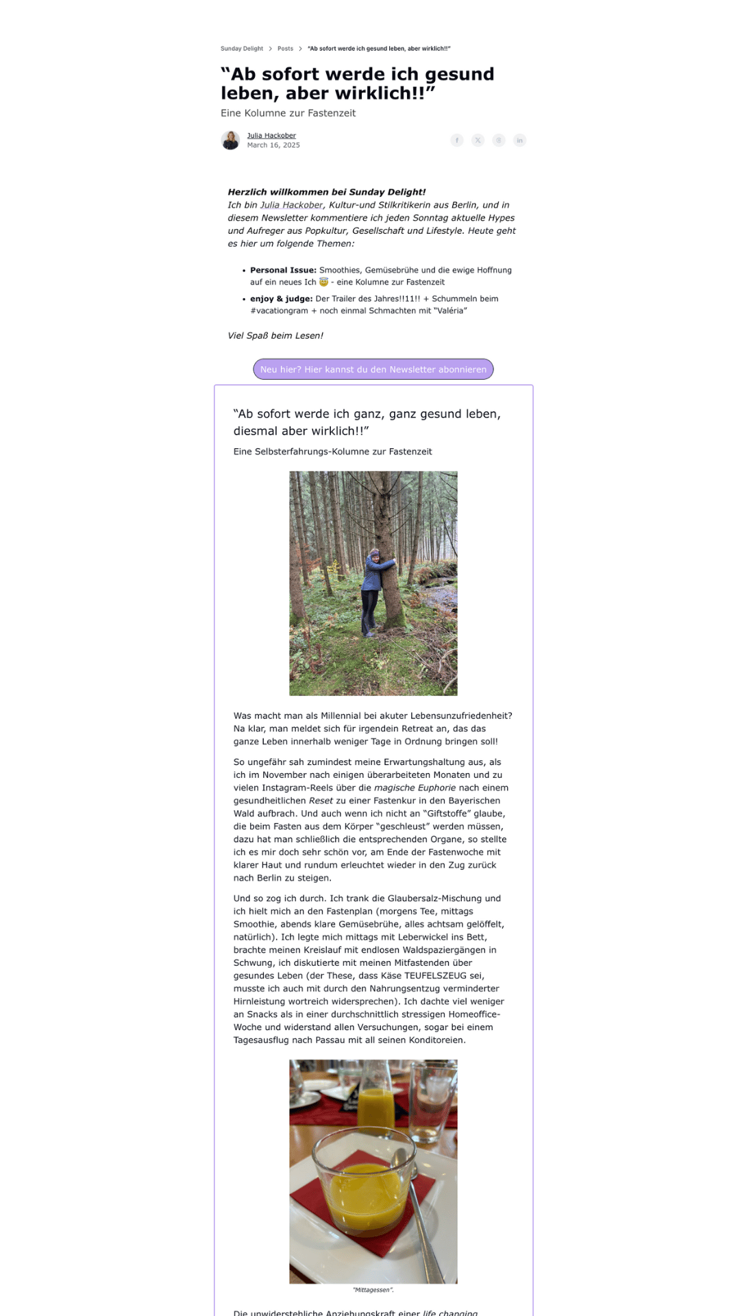 Das E-Mail-Magazin “SUNDAY DELIGHT” von Journalistin Julia Hackober: Alle Inhalte – inklusive langer Kolumnen – liest du direkt im Posteingang.