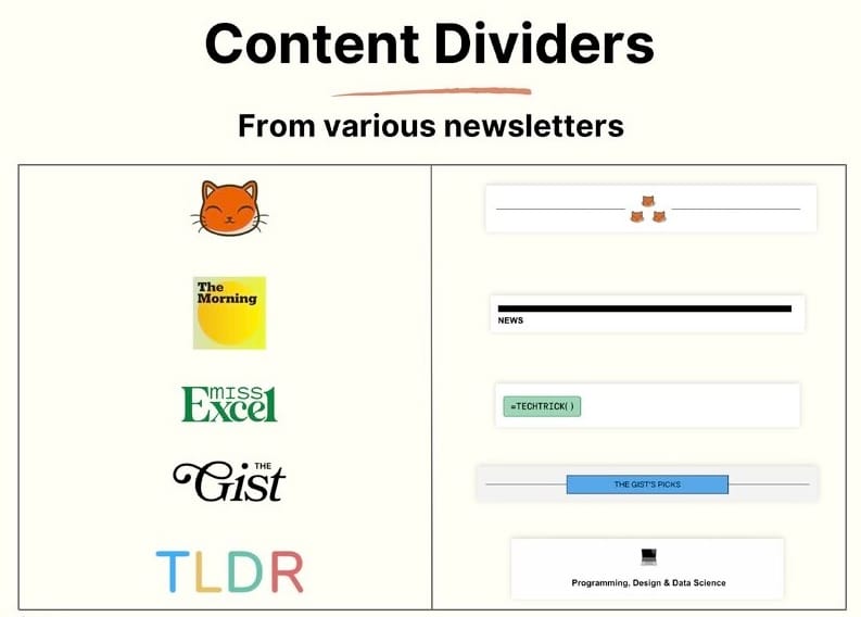 Du kannst deine Trennlinien aber auch ganz individuell gestalten und als Bild in den Newsletter laden. Hier siehst du ein paar Beispiele von bekannten Newslettern: